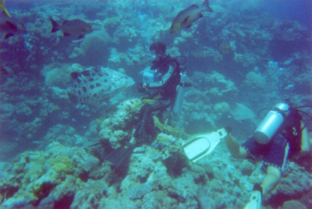 Sügér etetés a Cod Hole-banKészült: Cod Hole , Ausztrália Nagy Korallzátony