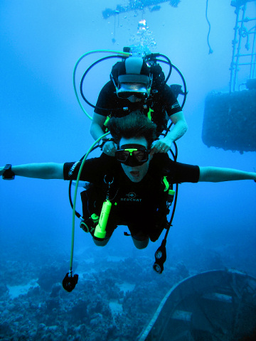 BarátfüleCanon PowerShot S70 f 2.8 1/60 sec A víz alatti közlekedési eszköz használata: a bal oldalon a fék, a jobb oldalon a gáz, aztán hajccs :)