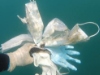 A cápa belegabalyodott egy műanyag cipőbe (papucsba), amely megakadályozta az úszásban és eltakarta a kopoltyúit.