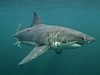 Kíváncsi fehér cápa lencsevégen