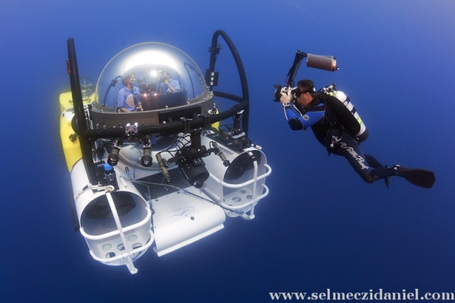 Igen különleges élmény, amikor a gömb fölött átcsapnak a hullámok, és palack nélkül kezdünk merülni. Pár ellenőrzés és már tartunk is az ismeretlen felé. 100 méteres mélységben már félhomály uralkodik, és cirka 160 méteres mélységben, ahol elérjük az aljzatot már majdnem teljes a sötétség. Felkapcsoljuk a külső világítást, és már indulunk is felfedezni ahol ember igen ritkán járhat.