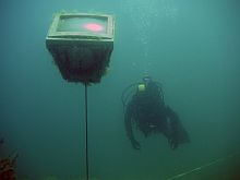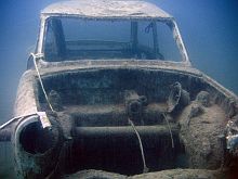 Egy merülést terveztünk, mivel nem tudtunk annyi palackot hozni ötünknek, hogy kettő legyen belőle, de aztán ez a végén nem is lett baj. A víz kellemes hőmérsékletű volt, 15 fok körüli. Én 5 mm-es nedves ruciban merülök, de nem igazán vagyok fázós, meg amúgy is általában ilyen vizekben sikerül merülnöm, tehát megszoktam már az ilyet... A látás sajnos nem olyan volt amilyenre számítottunk: mintha egy rossz napot fogtunk volna ki Hegyeshalomban. A látás a jobb helyeken volt akár 2-3 méter, a legrosszabb az a totális köd, nulla látással, de a kötél mellett szerintem nagyon jó ilyen vízben úszni. A kötelet nem nehéz megtalálni, csak a partra merőlegesen beúszik az ember, majd jobbra elindulva lehet követni a pályát. Nos szó mi szó, kishalakkal nem nagyon találkoztunk, mivel a látótávolság erősen változó volt, de inkább gyenge. Aztán szépen sorban jöttek a különböző tárgyak a pálya mentén.