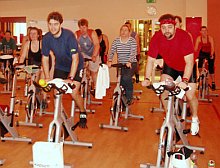 Amikor ez ügyben beszélgetni kezdtem Pétercsák Józseffel, ő kapásból a spinninget javasolta, mint kipróbálásra alkalmas sportot. Aerobicból is sokféle van, de személyes kedvence, a spinning manapság egyre divatosabb, mert lendületes, hatékony és hölgyek-urak egyaránt szeretik. Edzőkről, edzésekről szót ejtve arról beszélgettünk, hogy az állóképesség fejlesztése nem egyenlő a tűrőképesség fejlesztésével. Ez utóbbi akkor fordul elő, ha az edző nem jól csinálja, amit csinál. A "kemény edzés" kedvéért olyan módon hajtja az embereket, hogy azoknak előbb-utóbb ízületi fájdalmaik lesznek, amit még meg is tud magyarázni: "a fájdalom jó, így fejlődsz". De ez nem igaz akkor, ha tönkremegy a térd, meghúzódik az izom vagy bármi más sérülés az oka.A terembe lépve úgy nézett ki, mint ha néhány tucat szobabicikli közös tekerése lenne a hangzatosan spinningnek nevezett edzés. Józsi mosolygott, és állította, fog még meglepetés érni. Az időpont okán nem voltunk túl sokan, így aztán elsősorban magamra kellett figyelnem. Arról már előzetesen szó esett, hogy bármilyen utasítást mond az edző, a legfontosabb a résztvevő személyes edzettsége, tehát nem gond, ha nem állítod erősebbre a fokozatot, amikor nem bírod- a lényeg, hogy tekerj, úgy, ahogy az még neked jólesik.