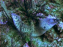 Nem jött be, mert a védett övezet a víz alatt tényleg nem lerabolt helynek tűnt. Merülésem legmélyebb pontja 28 méteren volt, de már 20 métertől feltűnt a rengeteg sárga és vörös gorgónia. Itt aligha húzzák át a fenéken nap mint nap a halászhálókat! Ezt tanúsíthatta az a néhány, félméteres vagy nagyobb sügér is, akik a kisebb-nagyobb halrajokkal együtt tűntek fel. Láttam egy tucatnyi bocicsigát is, egy szép murénát, három bonitót. Ha nem 16 fokos lett volna a víz, talán tovább tart a merülés 40 percnél.
