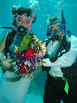 A tajvani óceánárium egyik medencéjében a közelmúltban megrendezték az első esküvőt - bár az ifjú pár végül nem volt hajlandó merülni.