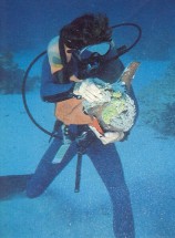 A megerősített, 13 mm-es acélrudakból álló, nagyjából 4 méter széles és 5 méter hosszú, illetve 2,4 méter magas ketrecet jó állapotban találtuk, persze most összehasonlíthatatlanul látványosabb korallokkal borítva, mint 25 éve lehetett. Egy nagyobb résen befurakodva elképzeltem ahogy Hans és Lotte, ősrégi kameráikkal felfegyverkezve, hússal teli zsákjukkal, feszültséggel telve próbálták végrehajtani a világ első etetését a zátony legnagyobb ragadozójával. Aztán amikor kibújtam a ketrecből, gyorsan rá kellett jönnöm, hogy az itteni tűzkorall, bár hasonlít karib-tengeri rokonával, lényegesen fájdalmasabb sérüléseket tud okozni. Ez úgy derült ki, hogy fejemmel egy tűzkorall-ághoz értem, és az abból letört ujjnyi darab a nyitott búvárruhám nyakrészén át egészen a hátam közepéig lecsúszott. Ahogy próbáltam kivenni némi küszködéssel a tűzkorallt, a kezem is sérült, itt két hétig volt látható a nyoma, míg a hátamon egy hónapig.