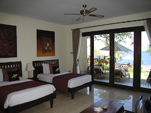 Tulamben a település nagyjából a nulla és a zéró között van, sokat ne várjunk tőle, szót nem érdemel. Mi egy ismerősünk (Misa) volt munkahelyét, a magyarok által már ismert és akkor frissen felújított Tauch Terminal-t látogattuk meg, amiről már volt egy cikk, itt olvasható. Nagyon megkedveltük ezt a kis oázits is, és bár Indonéziát már többször megjárt csíkosmacska olvtársunk drága úri huncutságnak titulálja mind az ott merülést, mind a lakást és étkezést, én nagyon nem bántam meg, hogy oda vetett a sors. Csodálatos környezet, tökéletesen felszerelt és kialakított szinte lakosztály szintű szállás, hihetetlen profi kiszolgálás, és szuper konyha. Először még próbálkoztunk a kinti éttermekkel, de egyrészt nem voltak annyira olcsóak, másrész a kaja kevés volt és minőségileg is gyenge. Amikor minimális felárért cserébe nem az útmentén a kamionok által felvert porban hanem egy pálmafás zöldövezetben, nagyobb és finomabb ételt kap az ember- nem volt kérdés, hol vacsorázzunk az egy hét alatt, reggeli az árban, ebédre meg mindig valami egyszerűt ettünk.