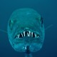 Jól szerkesztett kép, talán a melluszononyok pozíciója nem túl szerencsés, mert némi árnyékot vet a hal szemére, ami kicsit zavaró. Fekete, homogén háttér ami ha lehetne talán természetesebb lett volna kékkel (amennyiben nem éjszakai merülés). Ebben az esetben a színek összhangja és a fehérlő fogak miatt jó választás. Korrekt portré! |
