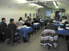 Ezután a védett víz -itthon jellemzően medence- parton megtartja az eligazítást, kitérve minden részletre, végrehajtás módjára, a feladat céljára, használt kézjelekre és a továbbiakra mintha ténylegesen olyan tanulókkal kellene megismertetnie a gyakorlat végrehajtását, akik akkor fogják először végrehajtani.