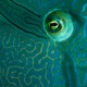 A téma jó, hiszen a napóleonhalnak gyönyörű mintázata van a szeme körül. A szerző a szemet el is helyezte az aranymetszési pontba, ahogy illik. A kép azonban nem elég éles és kontrasztos ahhoz, hogy igazán élvezzük. Ez nem csoda, hiszen a 100-as makróval legalább 1 m távolságból kellett fényképezni e kéttenyérnyi területet és ekkora vízköz elmossa a finom részleteket és a tiszta színeket. Ronthatott a minőségen, ha még nagyítani is kellett. Mindennek ellenére is a jobbak közül való. |