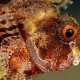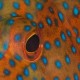 Az ékszersügér képe nagyjából élesnek mondható, de a színeket a "szokásos" kékeszöld fátyol torzítja. Ha már nem tud a fotós világítással, szűrővel, vagy legalább fehéregyensúly korrekcióval ezen a felvételkor segíteni, utólag is lehetne az elszíneződést némileg csökkenteni. Igaz, a halfejet a fotós vagy a felvételnél, vagy inkább a nagyításnál olyan előnytelenül feldarabolta, hogy korrekt színekkel sem tudnánk élvezni a képet. A szem túlzottan a jobb felső sarokban van, a szájvonal elvágva. Pedig a jobb felső háttér azt ígéri, hogy a fej szépen elválhatott volna a háttértől. Ha csak a pettyes mintázat szűkebb bemutatása lett volna a cél, ahhoz brilliáns élesség és tiszta színek kellenek. |