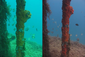 - A színelnyelődés nagyon gyorsan változik, lehetőleg minden kép előtt mérjünk fehér egyensúlyt a legjobb végeredmény eléréséhez. Ha olyan szerencsések vagyunk, hogy a gépünk több un. custom módot tud tárolni (C1, C2 stb általábban a jelölése pl. canon pro 1) akkor megtehetjük, hogy letárolunk pár mélységet, és dolgozunk egy változóval. Ha hirtelen beüt a csoda és jön a mola mola és nincs idő fehéregyensúlyt mérni csak áttekerjük a mélységben közelebbi C módra ... jobb mint a kék-sárga kép. Ha egyik sem megfelelő, válasszuk a mélyebben mért fehéregyensúlyt - így egy kicsit pirosas lehet a képünk, de ezt utána egy számítógépes retusáló programmal könnyedén helyrehozhatjuk