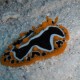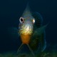 Jó téma a denevérhal ivadék, de nehéz szépen megoldani a keskeny és magas termete és a sötét teste miatt, a legjobbaknak is nehéz feladat. Jól megoldani itt sem sikerült, a szem alig kivehető és a farokúszó sugarai is beleolvadnak a sötét és zavaros háttérbe. A szűkre vett kompozíció egyébként jó lenne, ha a hal éppen fordítva, felénk úszna. |