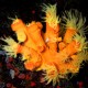 Nehéz dolog a sárga színt (és némileg a narancsot is) vezérelt vakuval helyesen exponálni,inkább csak manuálisan, vagy mínusz korrekcióval lehet. Általában túlexponált az eredmény és elvesznek a finom részletek, mint ez esetben is. A frontális megvilágítás "laposítja" a kehelykorall csokrot, ráadásul az is, hogy felülről van fényképezve. Oldalról, vagy részletet fotózva jobb lett volna az eredmény. |