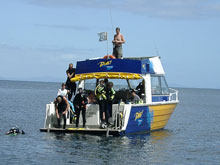 Jan a merülőtársam (csórikám!), gyors OK-OK után merülés, a hullámzás fent marad, és szívok mint egy poszívó de végre kezd a gyomrom is meg én is a himbálódzó hajó után megnyugodni. Pár perc után végre nem arra koncentráltam, hogy megőrizzem a lelki egyensúlyom és a lebegőképességem (hiába no, ez volt az első IGAZI merülésem) feltűnt, hogy vannak a vízben még mások is kettőnkön kívül.