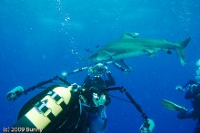 Ám pár nap múlva már más vizeken jártunk, és a mélydéli túrán éppen úgy csalódott a búvár, ha cápás merülés nélkül megy haza, mint ha Gota Abu Ramadánál nem látja a szobrot. Persze a cápázást csak mértékkel képzeljük el előzetesen, mondjuk merülünk egy mélyebbet valamelyik zátonynál, jön egy szirtcápa, rövid ideig a környéken úszik, aztán eltűnik a nagy kékben. Mi meg persze bosszankodunk, hogy nem jött közelebb, nem lehet filmezni, fotózni. 15-20 méteres távolságban nem is olyan félelmetes egy szirtcápa, nem is mutat jól, de nem baj, azért csak meg kellett volna örökíteni, maximum közelképnek bevágom a műcápa uszonyát. Az egész esemény nem nevezhető ijesztőbbnek, mint a plasztikcápa felbukkanása. Mindenesetre a búvártúra most már jó, mert volt eleven cápa, a hajó szalonjában volt egy raklap DVD (bár most sem a kedvenc filmjeimmel) és még a viharos erejű szélből is kijutott, tehát minden adott a kalandhoz.Aztán meg jön a Nagy Kaland. Az óceáni fehérúszójú cápák showműsoráról már írtam pár szóban annak idején. Maradjunk annyiban, hogy itt már azért elbizonytalanodik az ember. Oké, az szuper, hogy van cápa. De miért van belőlük több? Remek, hogy nem kell mélyre menni, de azért itt a nagy kékben valahogy zavaró, hogy jöhetnek fentről, lentről, elölről, hátulról, jobbról és balról. Nagyszerű, hogy közelebb merészkednek, lehet róluk közelképet csinálni, de azért nem kell beleúszni a kamerába- nem, én nem ijedtem meg, csak a cápákat féltem attól a kemény toktól. Mi ott lebegünk a nagy kékben, alattunk a nagy semmi, bizony nem való ez olyannak, aki nem tud semleges lenni (természetesen nem politikai értelemben). A víz visz, tehát annak sem való, aki nem tudja folyamatosan kontrollálni a csapathoz, a hajóhoz való helyzetét. Látunk más búvárokat, egyikük meglehetősen érdekes mozdulatsort mutat be, küszködik azzal a fránya felszereléssel- megértem, bonyolult ez a sok vacak. Koncentrál az inflátorra, a komputerre, igazgatja a maszkját, süllyed és sodródik, próbál a csapatával maradni, és fel sem tűnik neki, hogy mögötte 1-2 méterre nézegeti érdeklődve a cápa. Nyilván magában röhög- na nem a búvár, sejthető módon. Hála istennek búvárunkat annyira leköti a saját súlyos problémája, hogy nem veszi észre az új merülőtársát, mert esetleg rosszul reagálna. A cápa is jön vissza, hozzánk. Aztán eltűnik- forgolódok, merről jöhet? Oké, messze van, még ha közeledik is. Nem akar megállni? Nem. A búvárok elhúzódnak, az orrára koppintanak, ki-ki magabiztossága és vérmérséklete szerint reagál a cápa kíváncsiságára. Azt hiszem, a helyzet ismét mulatságos, és megint a cápa szórakozik jól. Gyorsan változik a világ: két napja örültem a cápának de zavart, hogy messze volt, ehhez képest most megkaptam a cápázást ezerrel, és most is zavar egy-két apróság. Nekem már semmi sem jó? Nehéz a búvárt igazán megörvendeztetni. Ámbár az is biztos, egy pillanatra sem jutott eszembe a túra végéig ránk váró hosszú hajó-, busz- és repülőút. Ez aztán az igazi búfelejtő, nem a külvárosi kiskocsma! Úgy hiszem, nem is ilyen műintézményben fogok olvasóim többségével összefutni. Majd a hurghadai reptér indulási oldalán találkozunk: én leszek a szakállas fickó, elkínzott arccal, a saját DVD-immel, egy víz alatti videokamerával, no meg pár élménydús sztorival.