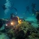 Rosszak a látási viszonyok? Kevés a téma? Egy jó fotós akkor is talál kiutat! Fekete-fehér technika, egy jó lámpa, komoly búvár komoly felszereléssel és máris izgalmas képet lehet készíteni a semmiből! Egy erősebb lámpa vagy vaku még dögösebbé tehette volna ezt az egyszerű felvételt. |