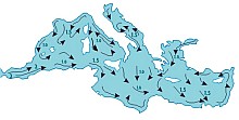 A Gibraltári-szoros előzőekben ismertetett sajátosságai miatt, a kevésbé sós atlanti víztömeg, a keskeny szorosban feltolulva, igen nagy sebességgel, mint felszíni áramlás ömlik be a mediterrán medencébe. A Gibraltári-fenékküszöb térségében a befelé áramló víz eléri a másodpercenkénti 80-100 centiméteres sebességet, és kb. a 36.000 köbkilométeres térfogatot! Ez a mozgás azonban nem egyirányú, mivel a Földközi-tenger erősen sós és sűrű, meleg víztömege, az Atlanti-óceánról beáramló hűvös vízréteg alatt kifelé folyik a medencéből. A heves erejű sodrás miatt, a Gibraltári-szoros aljzata nagy mélységben is mentes a finom, mélyvízi üledékektől. A hidegebb atlanti vizek az észak-afrikai partok mentén, mint az Algériai, vagy régebbi nevén Luzitán-áramlat hömpölyögnek tovább, keleti irányba. A kelet felé tartó áramlások sebességét növelő tényező, hogy a medence keleti területeinek vízszintje 15 centiméterrel alacsonyabb az Alborán-tenger vízszintjénél. A Szicíliai-szoros sekély selfje felemelkedésre, és részben északi irányú kitérésre kényszeríti az atlanti eredetű hűvös víztömeget. (A tápanyagban dús, hidegebb vizek keveredése okozza azt, hogy a Szicíliai-szoros térsége a Földközi-tenger egyik legjobb halászati területe.) Az észak felé kitérő áramlási rendszer először Korzika felé tart, majd innen délnyugati irányba fordulva, mint a Ligur-Provancei-Katalán áramlat tér vissza az Alborán medencébe. Az Algériai-áramlat keleti ága tovább folyik, és elérve a Levantei-medencét, vize felmelegszik, illetve jelentősen átalakul. Emiatt ezt, a fizikai és kémiai összetételében megváltozott áramló víztömeget, már Afrikai-áramlásnak hívják az oceanográfusok. A Földközi-tenger keleti peremterületén az áramló víz először északi irányba, majd a török partok előtt, nyugatra fordul. A Kis-Ázsiai-áramlás rendszere érinti az Égei és a Jón-tenger medencéjét is. A nyugat felé áramló víztömeget végül a Közép Mediterrán-áramlás vezeti vissza az atlanti térség irányába.