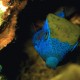 Klasszikus szemtől-szembe képet láthatunk, amivel ezt a gyakori adriai élőlényt is izgalmasan mutatja be a fotós. Talán egy kicsit a világításon javíthatott volna szinte az összes fény felülről érkezett. Ha van lehetőségünk és két vakunk, akkor jobb lett volna, ha a téma oldalait világítjuk. |