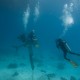 Egy műcápát meglovagoló búvárokat fotózó búvárról készült felvétel nem tudom, hogy mennyire kapcsolódik a havi témához, de a képnek nem csak a mondanivalója kíván kritikát. Sajnos messziről készült a felvétel, így alig lehet látni valamit a képen, természetesen a színek mind eltűntek a kék és a sárga kivételével. A búvárok felismerhetetlensége miatt még emlékképnek sem igazán jó. |