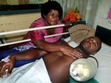 A fiatal helybeli férfi, a 30 esztendős Metereti Jeke bal karját amputálni kellett a súlyos sérülések miatt. Metereti élete szorosan kötődik a tengerhez, ott szerzi meg családja számára a mindennapi betevőt. A támadásra Vanua Levuban került sor. A család, azaz Metereti és szülei, valamint két rokon együtt indultak el egy hétfő reggelen a falujukkal szemben levő zátonyhoz. Ez népszerű helynek számít, mert könnyen lehet zsákmányt ejteni. Délután 4 óra körül szálltak ki a búvárok a vízből, de Metereti még visszament egy utolsó merülésre. Édesanyja arra figyelt fel, hogy az emberek hangosan kiáltozva hívják, és szinte sokkolta a látvány: a férfi bal karján szörnyű sérüléseket okozott a ragadozó. Noha próbálták azonnal elkötni a testrészt, a vér ömlött. Azonnal a kórházba rohantak az áldozattal, ahol csak gyors ellátásban részesítették és egy jobban felszerelt intézménybe szállították. Meteretinek nagy fájdalmai voltak, és életben maradásában nagy része volt annak, hogy a mentő sofőrje gyorsan száguldott velük az éjszakában. Az orvosok a bal karját már nem tudták megmenteni, de a fiatal férfi legalább életben maradt és próbál bizakodva tekinteni a jövőbe: "mostantól egyedül a jobb karom erejéből kell eltartanom a családomat".