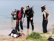 Talán ha tudom, mi vár ránk Budakalászon, akkor én is megfontolom a folytatást. Az kétségtelenül előny volt, hogy a lakóhelyemtől csak ugrásnyira voltak a Lupa-tavak, de a parton az ember hamar elveszítette az illúzióit. Megálltunk a semmi közepén, balra a második bokor volt a női, jobbra a harmadik a férfi "illemhely". A homokos parton a sok cuccal a hátunkon nem volt egy élmény belegázolni a vízbe, kifele menet pedig térdig süllyedtünk a marasztaló homokba. Az első szoktató merülésen egészen szorosan oktatónk oldalán úsztunk, és nagyjából egészében nem láttam semmit. Ez a helyzet a tanfolyami merülések során természetesen nem javult. A tó fenekén látásról nem lehetett beszélni, oktatóm a maszklevételt úgy ellenőrizte, hogy kezét az arcomra tette- ha nem volt maszk, akkor végrehajtottam a feladatot. Ezek a merülések se a brillírozásomról szóltak, de a minimumszintet azért sikerült teljesíteni.Sokan vitáznak arról, érdemes-e magyar tavakban vizsgázni vagy sem. Azt tapasztaltam, és aztán később más, tengerben tanult búvárokon is megfigyeltem, nyomasztó tud lenni elsőre egy ilyen élmény. Persze tó és tó között van különbség. Az elhanyagolt budakalászi tópartot látva, odalenn pedig az iszapban guggolva a "fun dive" kifejezés inkább ironikusnak tűnt, kalandról beszélni viszont nem volt túlzás. Az ilyesfajta élményben az a jó, hogy remekül lehet róla sztorizni, de ezzel nagyjából végére is értem az előnyök felsorolásának. A bableveshez hasonló állagú és színű víz közelebbi megismerésétől szívesen eltekintettem volna, de a maszklevéleteles és reduktorkereséses feladatok közben szemem és szám nem maradt szárazon. A zavarosban úszkálásról később kiderült, hogy meg lehet szokni, de akkor kicsit sem vágytam annyi Lupa-merülésre hogy belerázódjak a helyi viszonyokba.
