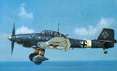 A Ju 87-es típust a harmincas évek közepétől egészen 1944-ig gyártották, nagyjából 6000 darab készült belőle. Az egyfedeles, egymotoros, kétszemélyes gépet a spanyol polgárháborúban vetették be először. Úgynevezett precíziós bombázásra, pontosan meghatározott célpontok megsemmisítésére használták. A pokoli zajt keltő szirénájáról hírhedt Stuka fegyverzete szegényes volt, ráadásul viszonylag lassan repült. Manőverezési képessége gyenge volt, ezért könnyű préda volt a vadászgépek számára. Teljes egészében mindössze kettő maradt fenn, az egyiket Londonban, a másikat Chicagóban állították ki.