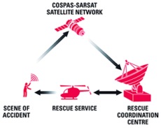 406 Mhz-es rendszer, a Cospas-Sarsat műholdak által monitorozott frekvencia (a régi 121,5 Mhz analóg frekvencia figyelése 2009-től megszűnt) globális lefedettséget biztosít, tehát a világ bármelyik pontján működik. Amikor vészhelyzetbe kerülünk, aktiváljuk a jeladónkat, ami egy digitálisan kódolt jelet küld a műholdnak, így egyéb jelforrások nem zavarhatják. A helyzetünket meghatározva, vagy ha van a készülékünkbe beépített GPS, akkor a pozíciónkat továbbítja a műholdnak, ami nagyban szűkíti a keresési területet. A műhold riasztja a Vészhelyzeti központot, ahol megszervezik a mentésünket.Minden PLB-t (Personal Locator Beacon, azaz Személyi helyzet jeladó) regisztrálni kell, ami több szempontból is előnyös. A téves riasztások elkerülhetőek telefonhívással vagy rádiós kapcsolatba lépéssel, így komoly költségtől kímélhetjük meg magunkat. A keresés megkezdése előtt már tudják a regisztrált információk alapján, hogy tengeri, légi vagy akár egy búvár kereső eszközről történt a riasztás. Azonban ha ezt végiggondoljuk egy valós, nyílt tengeri búvár elsodródás esetén, nem biztos, hogy a legjobb megoldást választottuk. Vizsgáljuk meg a folyamatot: bekapcsoljuk a jeladónkat, a saját búvárhajónk -ami elvileg a legkézenfekvőbb segítség lenne- nehezen tud részt venni a keresésben, hiszen semmilyen tőlünk érkező elektronikus segélykérést nem tud fogadni. Ha a riasztási jelzést sem tudjuk leadni, akár órák is eltelhetnek míg a keresésünkre indulnak. A központ riasztásáig 2 óra is eltelhet, és ha tényleg egy távoli, minden civilizációtól mentes helyen merülünk, akkor lehet, hogy a segítség több száz kilométeres körzetből érkezik, miközben esetleg csak pár km-re vagyunk a hajónktól. Összefoglalva előnyös, hogy az eszköz a világ bármelyik pontján működik és nincs szükség vevőegységre, ám a mentőegység megérkezéséig sok idő telhet el.
