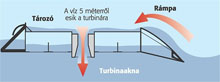 A medencébe folyamatosan áramló víz a ponton közepén zúdul vissza a tengerbe, villamos energiát termelve. A dán partoknál üzembe helyezett prototípus 3-as erősségű szél esetén másodpercenként 100 köbméter vízmennyiséget gyűjt be a tengerről, és ezzel hozzávetőlegesen 4 megawatt energiát termel. A számítások szerint egy ilyen konstrukció maximálisan 10 megawatt teljesítményű is lehet, a 4 megawattos változat megépítése mintegy 4,3 millió euróba került.