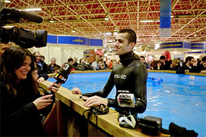 A barcelonai 17. Mediterranean Dive Show keretében a spanyol Aleix Segura új világrekordot állított be a levegő visszatartás versengésében.