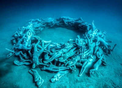 Az alkotások reflektálnak napjaink kihívásaira, van itt játszótér ahol öltönyös üzletemberek szórakoznak, menekültekkel teli csónak, fal felé tartó emberek, egymásra fektetett, életnagyságú emberszobrokból álló hatalmas kör. Bizonyára izgalmas lehet végigúszni ezt a különleges tárlatot, ami az évek alatt folyamatosan változni, módosulni fog, ahogy a tenger élővilága meghódítja magának ezt a területet.