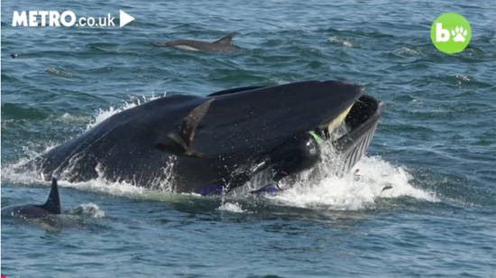 Szegény óriás gyakorlatilag nem tehet róla, vadászmódszere szerint hatalmasra tátott szájjal igyekezett minél több kishalat benyelni, és ahogy az a videón is látszik, azonnal "kiköpte a búvárt".
