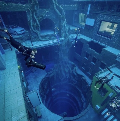 A dubaiban épült Deep Dive Dubai medence nagyjából követi a hagyományokat, a meleg vízes komplexumot (30 fok) telepakoltál mindenféle látványossággal, aminek izlésessége némileg megkérdőjelezhető, de ez teljesen szubjektív dolog.