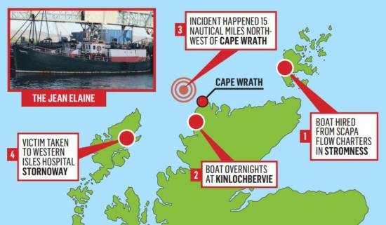 A bíróság megismerkedett a balesetet történetével. Lex Warner teljes búvárfelszerelésben esett el az MV Jean Elaine nevű charterhajó fedélzetén, de annak ellenére, hogy Andy Cuthbertson kapitány a baleset után megkérdezte, ki akarja-e hagyni a merülést, ragaszkodott hozzá, hogy jól van. Így a vízbe ugrott és leereszkedett a végzetes mélymerülésre.