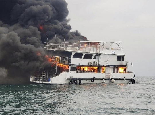 Rendőrségi források szerint a testülethez 16.29-kor érkezett bejelentés arról, hogy egy hajó kigyulladt a Jin-szigettől délkeletre, és a tengerészeti rendőrség vizsgálja az okot.