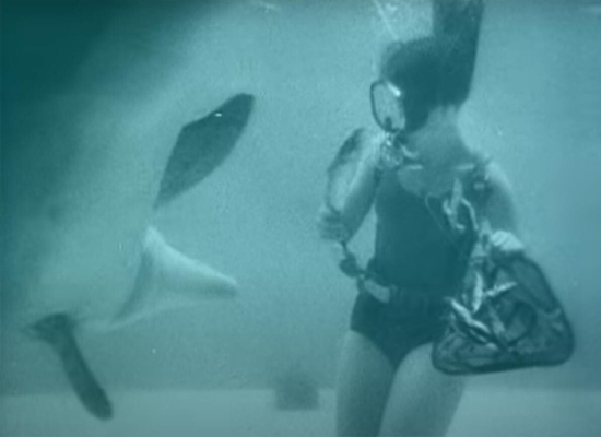 Ez a katonai célokra kiképzett delfinek tipikus "munka" forgatókönyve. Ez is egy a sok közül, amit egy fiatal lány, Galina Shurepova - a nácik egykori foglya és egy szovjet tiszt lánya - tanított nekik.