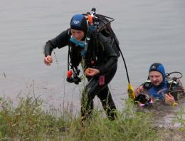 Gurisatti Róbert, a kiváló búvárúszó ismertette a versenyzőkkel. Az egyik csapatban én magam is megpróbáltam minél jobb eredményt elérni, és végülis az első bójánál történt bizonytalankodáshoz képest a tisztes középmezőnyben végeztünk. Tulajdonképpen érdekes volt az igencsak ritkán, és szinte soha nem ennyire pontosan használt tájolási képzettség gyakorlati alkalmazása, és a résztvevők bizonyították, hogy a hazai búvárok számára nem jelent megoldhatatlan kihívást az ilyesmi.A víz alatti látótávolság sajnos ugyanis nem kényeztetett el minket, és természetesen a bóják környékén a feladatok végrehajtása közben kevesen ügyeltek arra, hogy ne kavarják fel az aljzatot. Ráadásul a hínár is könnyen a búvárokra tekeredett, szóval páran vízimanókat megszégyenítő ábrázattal emelkedtünk a felszínre. Maga a tó egyébként nem túl mély, a hat métert sehol sem sikerült elérni, és elsősorban apró naphalakat láttam benne. A parton már most is kiépített a hely valamilyen szinten, de állítólag hamarosan egy valódi búvárbázis várja majd az érdeklődőket, a tó távolsága pedig Budapesttől alig 60 kilométer.
