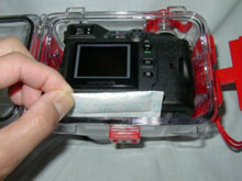 - Vigyázzunk a páramentesítő tasak elhelyezésre, mert egy rossz helyre került tasak miatt elcsúszott fényképezőgép megfeszítheti a tokot, ami beázáshoz vezethet!