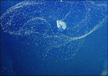 Most rátaláltak a megoldásra, állítják azok a tudósok, akik tíz évet töltöttek az óriás farkos zsákállatoknak nevezett hálószövő, óceánlakó élőlények tanulmányozásával. Nevük ellenére az óriás farkos zsákállatok (Bathochordaeus sp.) kicsi, pár centiméteres állatok, ovális törzzsel és viszonylag hosszú, vékony farokkal, ami miatt ebihalakra hasonlítanak. A felszíni vizekben élnek nagyjából egy méter átmérőjű, ragadós, nyálkás hálók közepén, amelyeket azért szőnek, hogy táplálékot fogjanak velük. A jelek szerint a hálókat naponta levetik, és ezek azután lesüllyednek a fenékre.