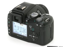 Kézbevéve a gépet rögtön szembeötlik az impozáns méretű LCD. Mivel ez egy tükörreflexes gép, nincs lehetőség a kép komponálására az LCD-n. Cserébe a fotózás közben fontos adatokat kapunk itt a rekesz / zársebességtől egészen a használt színtérig, ami nem is árt, lévén a gépnek nincs felső adat kijelzője. Egyébként okos megoldás, hogy egy OK gomb megnyomása után tudunk mozogni az kijelzett infók között, és azt itt változtatni is tudjuk - ezzel sok, menüben elfecsérelt időt tudunk megspórolni.