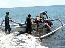 Mivel hallottunk elrettentő szállásárakat, igencsak elégedettek voltunk 33 euros, nagyon tiszta kis német, na persze, hogy medencés, légkondis hotelünkkel. A barátságtalan tulajnak sikerült azonban elérni, hogy nem ide jövünk vissza legközelebb, mert megsértődött, hogy nem vele merülünk. Komoly okunk volt rá, igen drágán adta volna (30 euro), és messze volt a víztől, és még a saját cuccunkra sem adott kedvezményt. (Ajánlani tudjuk a szomszédban lévő, nagyon pepec Tulamben wreck nevű szállodát, ami 30 USD/éj és nagyon klassz, csak teltház volt itt sajna.) Végül egy helyi bázist választottunk merülni, (Puri Madha Dive, 6 merülés saját cuccal 85 USD). Csak velünk foglalkoztak vendég híján. (A tavalyi Bali robbantások bizony sok turistát és búvárt távol tartanak, de ugye a baj Londonban és Madridban is megtörténhet, vagyis bárhol, szóval teljesen értelmetlen aggódni ezen szerintem.) Bizony a Madha Dive-os fiúkkal királyi dolgunk volt. Arról nem beszélve, hogy rögtön a Liberty wrecknél van a parton a bázisuk, amit ötször merültünk meg, de nem volt elég, legalábbis nekem. Szó szerint visszavágyom ide. Szerelmetes egy hely, csodaszépek itt a fekete vulkáni homokon kiragyogó korallok és halak. Nagyon szép kontrasztot ad a látványnak. Először tényleg szénbányára emlékeztet, de különös bája van, egy percre sem engedi elfelejteni a fekete homok, hogy odafent egy óriási büszke vulkán és a kisebb rokonai uralják a tájat. Na, itt minden volt, merültük nappal, éjjel, hajnalban. Bumfordi legelésző bumpheadek (napóleonhal méretű papagájhalak) akiket hajnalban lestünk meg, levélhalak, lepényhal, angyalhal, pillangóhal, kőhal, tűzhal, kihypózott picassohal, változatos triggerfishek, rákok, csigák, anemonarákok, pöttyös muréna, cápák, fergeteges halrajok, polip, a karácsonyfaférgek is szép számmal, felsorolni is lehetetlen. Éjszaka spanyoltáncos, életemben először. Szegényt felverte a vaku fénye, aztán akaratunk - és