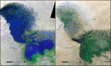 A szerzőpáros a Journal of Geophysical Research című folyóiratban megjelent cikkében arra a következtetésre jutott, hogy a természetesnek mondható vízszintváltozás adott fázisában, amikor is a tó kisebb méretűre húzódott vissza, az emberi beavatkozásnak köszönhetően visszafordíthatatlanná vált a tó kiszáradása. A dominó-hatásként leírt folyamat kezdetén a tó körül élő lakosság a visszahúzódott tó medrében és a tó egykori partjai körül fogott bele a földművelésbe és az állattenyésztésbe.