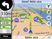 Navigáció során a program grafikusan jelzi a térképet és a várható manővereket, emellett több nyelven, többek között férfi és női magyar hanggal is képes közölni navigálni. Így az autónkba beköltözik plusz egy személy, aki pontosan, és időben szól, hogy mikor kell elfordulni, kihajtani a körforgalomból, de akár a gyorshajtásra is figyelmeztet, ha kérjük. Kellemes útitárs, és csomagja sincs :)
