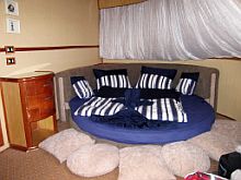 Mikor megérkeztünk (Hamatába), a hajó két nagy zodiacja hamar becuccolt bennünket. Először a nők és a csomagok mentek a hajóra, így mire én a fedélzetre tettem a lábam, már nagyrész elrendeződtek a dolgok. A feleség - nem árulta el, hogyan - megszerezte nekünk a nászutas lakosztályt. Nem sokat, csak 19 évet késett a dologgal, de meglátva a kör alakú nyoszolyát, egyéb luxuscuccot, belenyugodtam a megváltoztathatatlanba. (Ettől függetlenül nagyrészt kihasználatlan maradt a hencser, mert minden éjszaka a decken aludtunk, a csillagok alatt). A hajón a szokásos szafari-menetrend szerint zajlottak a dolgok: napi 4 merülés és közben a kajálás, punnyadás. Az eddigiektől eltérően az étkezéseknél, bár az étkekkel önkiszolgáltuk magunkat, a szalon boy megkérdezte, mit innánk, és rögtön hozta is. A merülések után a visszatérő búvárokat egy-egy pohár gyümölcslével várták, sokszor kevertek (alkoholmentes) koktélokat és körbekínálták napközben, ahogy gyümölcsöt, süteményt is.