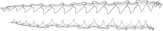 A selyemcápa fogszerkezetét ábrázoló rajz(Forrás: Floridai Természettudományi Múzeum, Ichtyológiai Osztály)