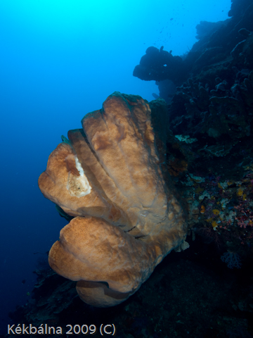 Trombita szivacsDSC_Maker DSC f 5.7 1/100 sec Ez a példány is Una Una egyik falán nőtt. Jó kis falak voltak ezek. Szinte függőlegesen szalad le sok helyen a víz 60-70 méterre. Majd ripi ropi 200 és 2000 lett a fenék mélység.