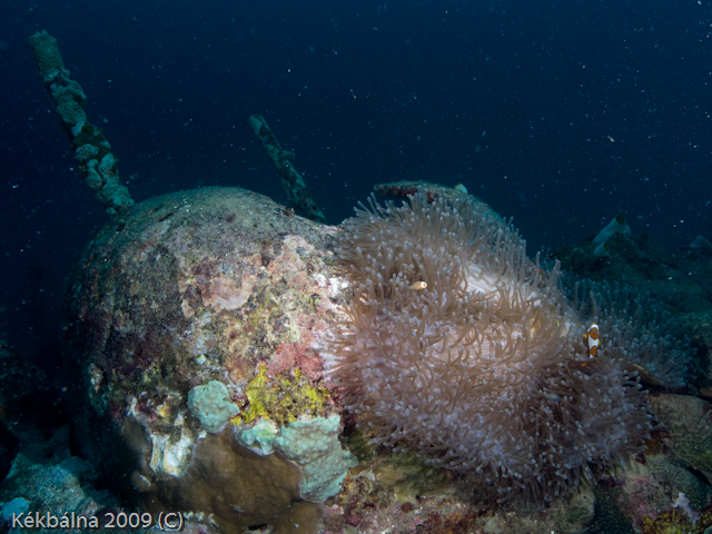 Élet és halálDSC_Maker DSC f 5.1 1/100 sec Sokkal jobb képet lehetett volna készíteni róluk. Sajna ott roncs lázban égtem. Így nem gondoltam át, milyen jó kis téma egy anemona Nemo halacskával a felső géppuska állás tövében.