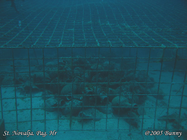 Az amfórákCanon PowerShot S70 f 2.8 1/125 sec A sziget túlsó oldalán pár éve egy helyi halász időszámításunk előtti időkből származó amfórákat talált. A régészek lerácsozták a maradékot, de azért elég nagy a rács nyílása, hogy a fényképezőgép beférjen.