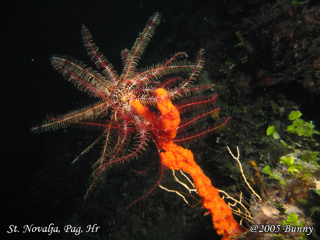 Szivacs és liliomCanon PowerShot S70 f 8 1/250 sec Nagyon sok agancsszivacs végén tengeri liliom terpeszkedett (ami a nevével ellentétben állat), végül nem bírtam kihagyni és lekaptam.