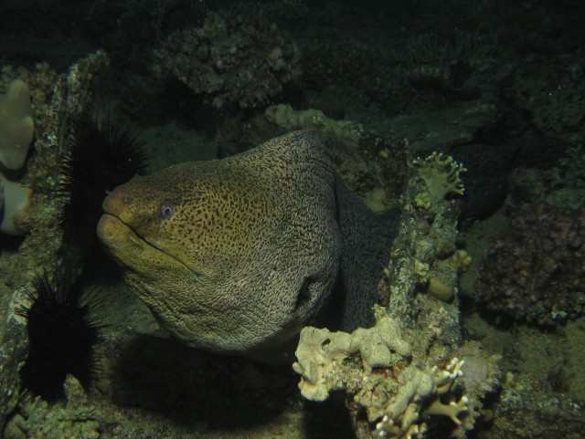 Canon PowerShot A520 f 2.6 1/250 sec A nagy muréna a Bluff Point kicsi roncsáról. Egész alakos kép.